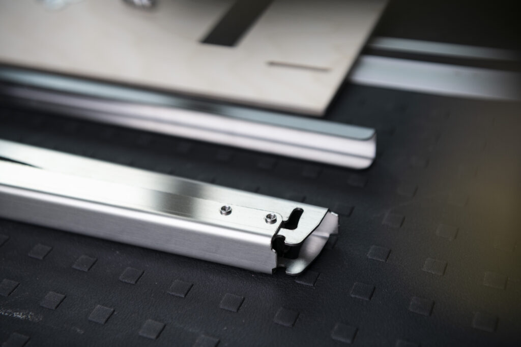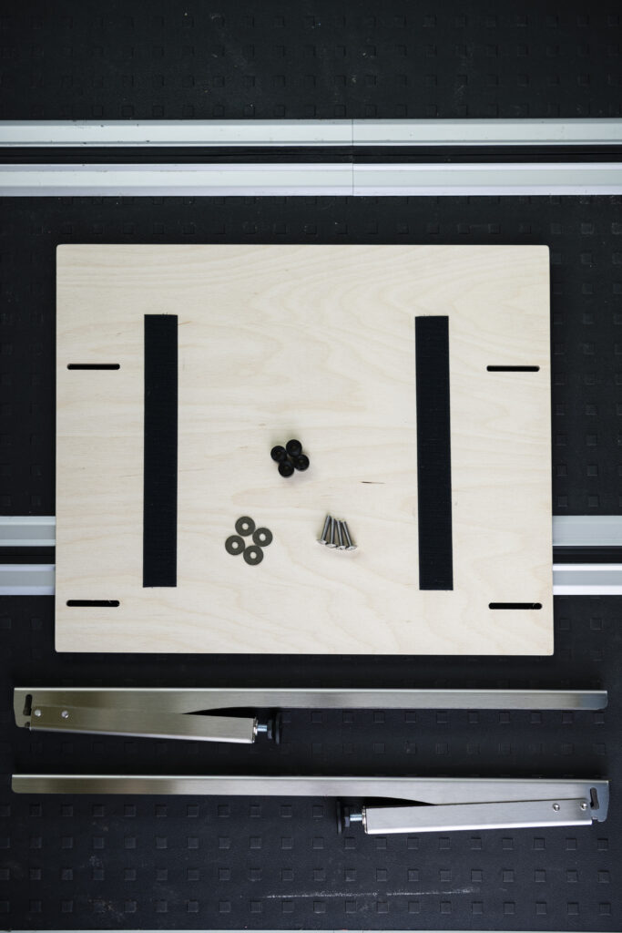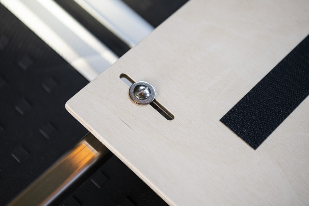 Auf den 2 cm breiten Edelstahlschienen ist eine Birkenholzablage montiert die mit zwei Klettstreifen versehen ist. Auf der Holzablage wird ein Polster mit waschbarem Bezug befestigt. Der Campersitz Max ist eine einfache Alternative zur Drehkonsole und bietet die Möglichkeit unkompliziert und portabel einen oder zwei Sitzgelegenheiten für den Fahrgastinnenraum stets bereit zu halten. Der Campersitz Max kann ohne Werkzeug innerhalb von 2 Minuten aufgebaut werden und braucht keine TÜV Abnahme, da er nur im Stillstand des Wagens benützt wird.